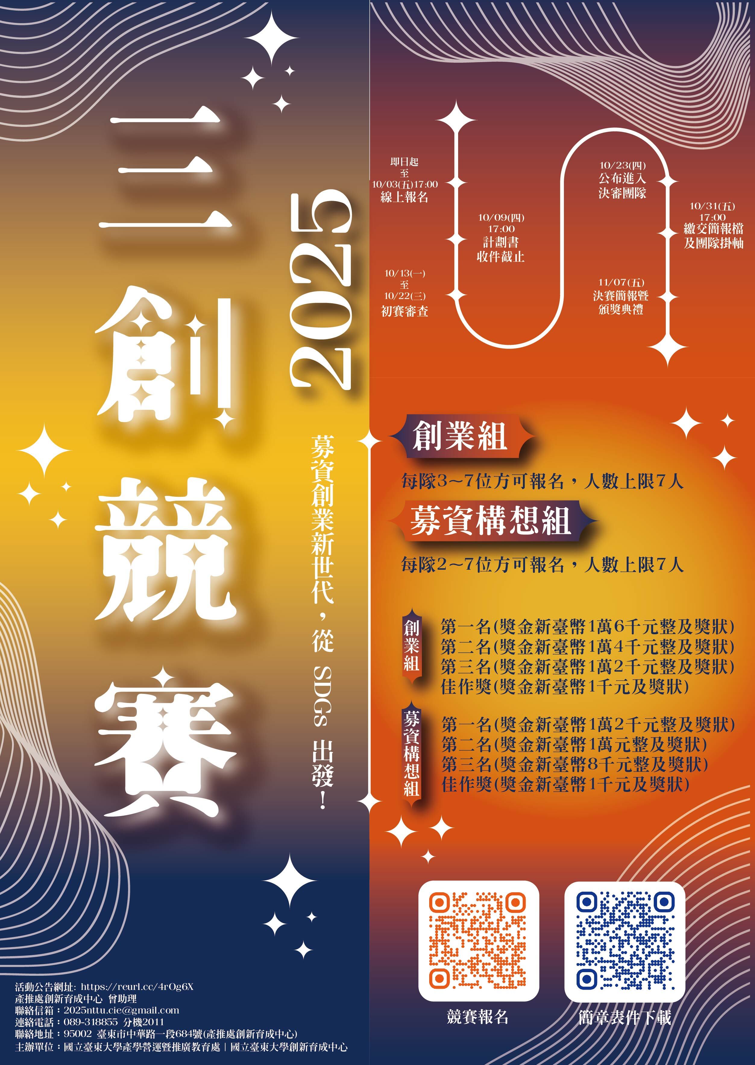 【創新育成中心】2025學生三創競賽決賽觀摩-上午場募資構想組 --現場觀摩-認列跨域自主學習歡迎報名 連結報名|上午場報名