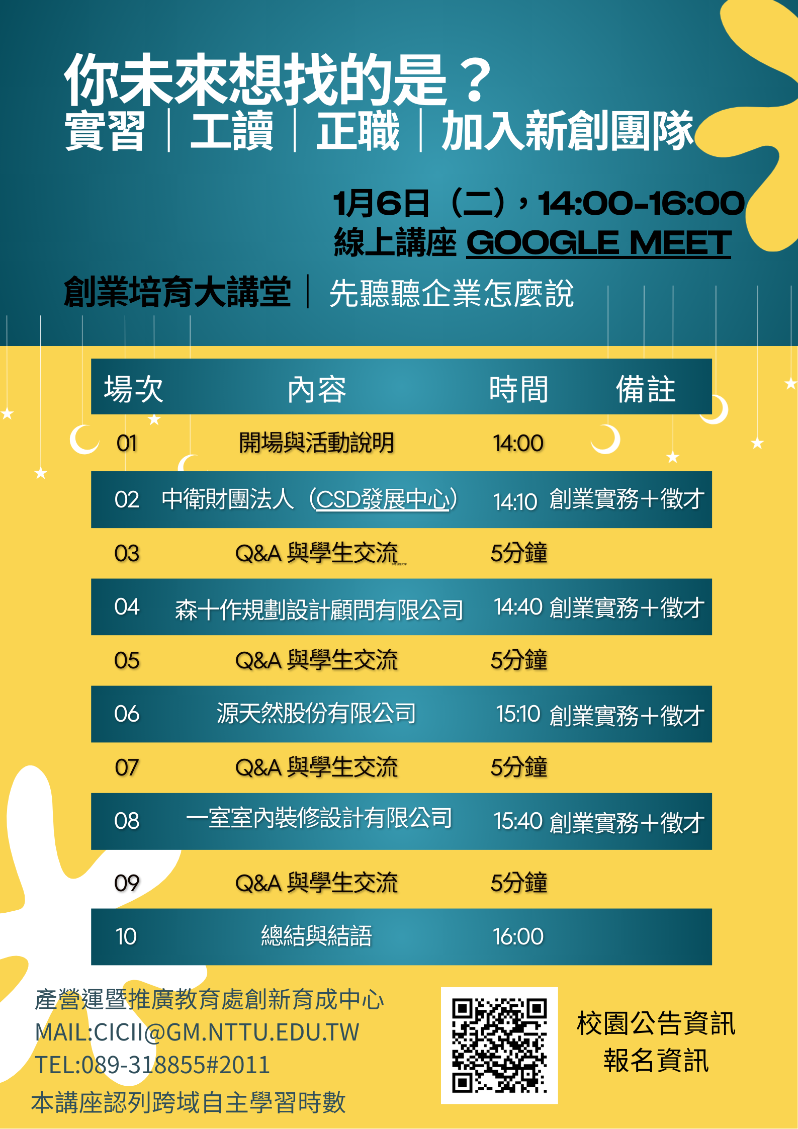 👥 對象: 對創業實務、企業運作、實習、工讀或未來就業有興趣之本校學生
